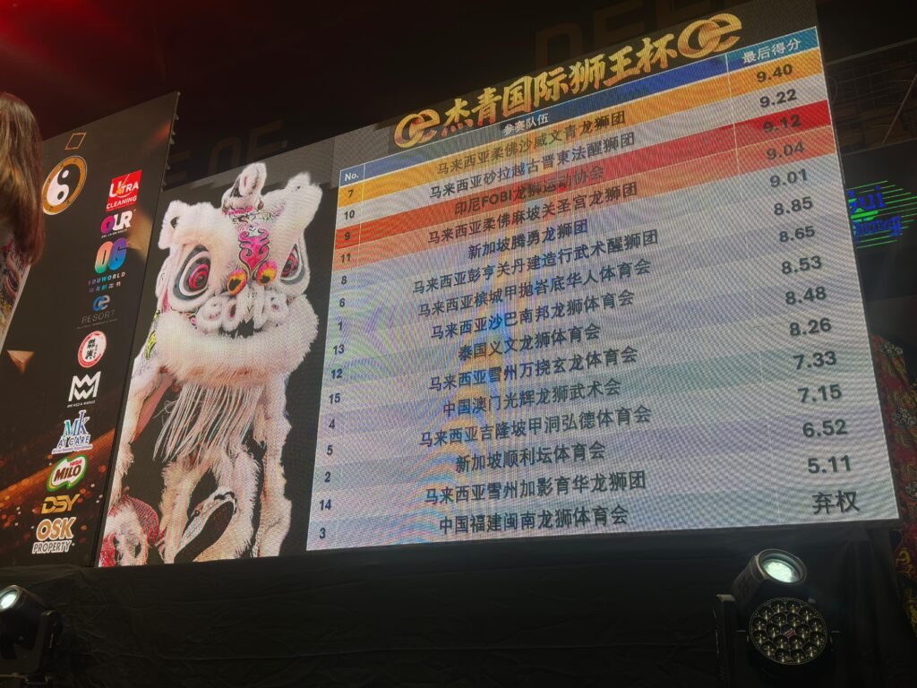 Indonesia yang diwakili sasana Ching Lung asal Bekasi, Jawa Barat menjadi juara ketiga dengan nilai 9,12. Adapun juara pertama adalah Malaysia dengan nilai 9,4 dan juara kedua juga Malaysia dengan nilai 9,22.